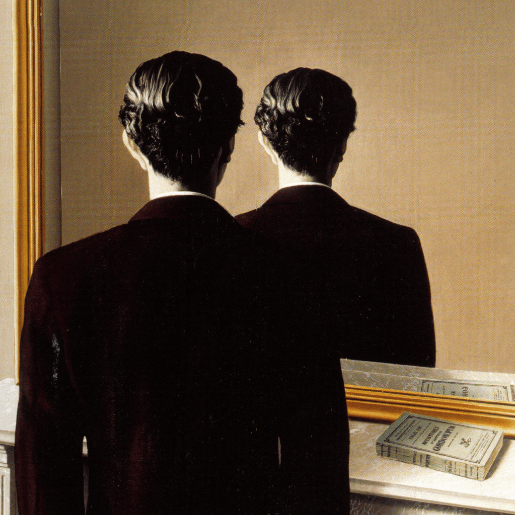 One of the images that provokes my mind more than anything in the technological landscape is a painting by René Magritte where a man stands in front of a mirror and yet the mirror refuses to reveal his face. The book on the mantelpiece reflects correctly but the man is reflected from behind again, as if the mirror itself rejects the logic of physical reality. This small fracture between expectation and perception creates a deeper experience than any technically perfect image because the painting does not imitate the world but quietly breaks it. Many surrealists explored similar distortions of reality, from Escher’s impossible architectures to Dalí’s melting clocks and the silent metaphysical cities of Giorgio de Chirico, all revealing that the power of art often appears when reality begins to behave like a hallucination.